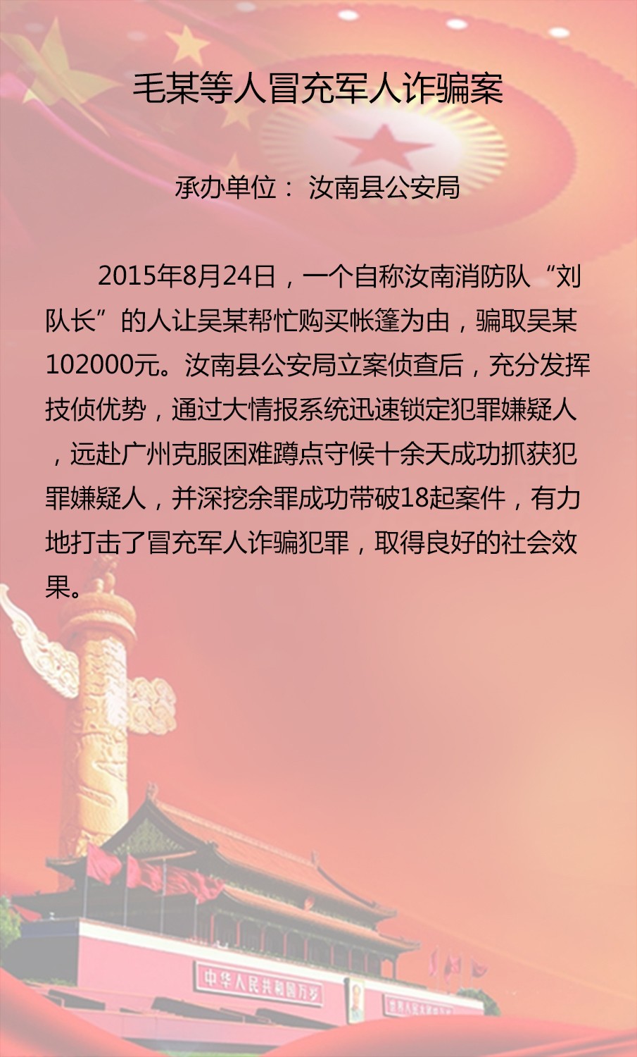 毛某等人冒充軍人詐騙案