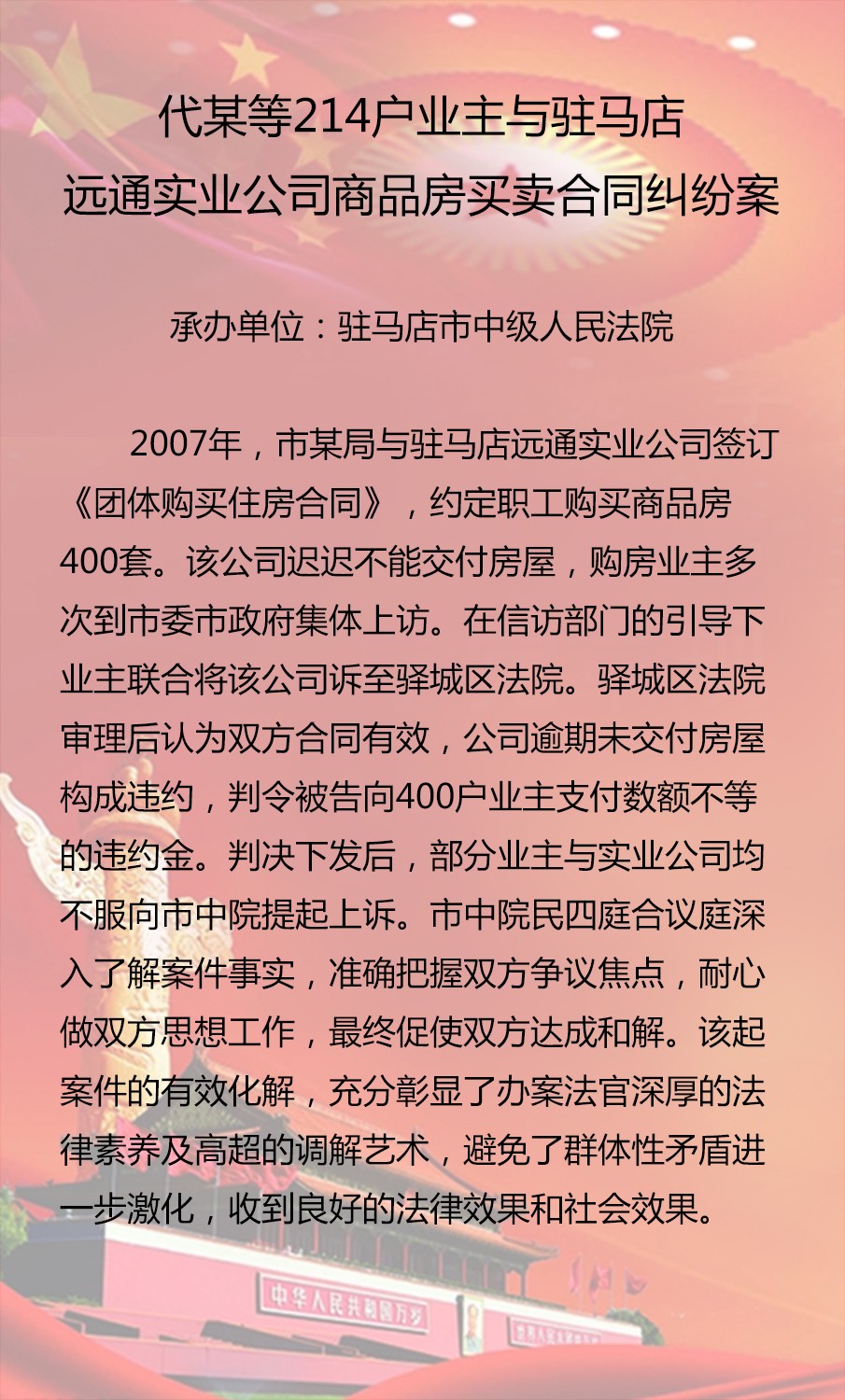 代某等214戶業(yè)主與駐馬店遠通實業(yè)公司 商品房買賣合同糾紛案