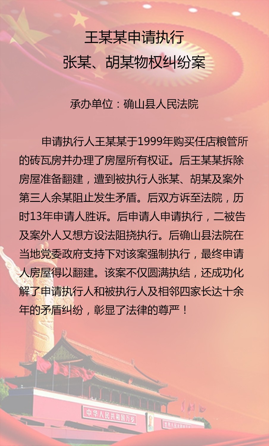 王某某申請執(zhí)行張某、胡某物權糾紛案