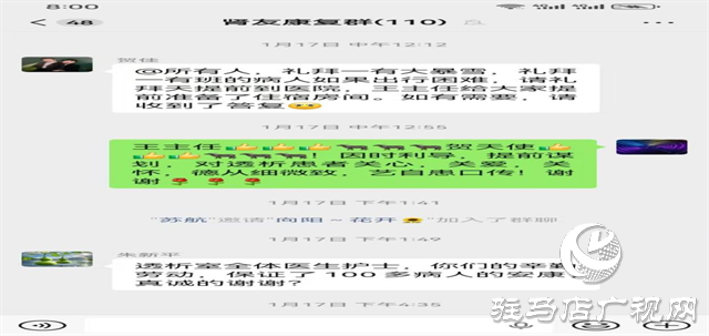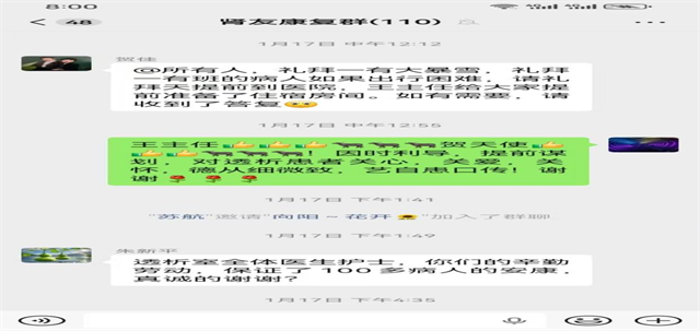 逐一摸排:主管護(hù)師賀佳立即對100余名透析患者的居住地址、交通方式進(jìn)行全面梳理,篩選出偏遠(yuǎn)山區(qū)、獨(dú)居老人等高風(fēng)險(xiǎn)群體,在微信群里告知主任的決策,并逐一給沒有智能手機(jī)的患者打電話告知;