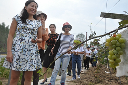 隨后,大家在雙峰酒業(yè)總經(jīng)理卞小燕的帶領(lǐng)下走出會議室前往葡萄園內(nèi)采摘品嘗天然有機(jī)葡萄,找尋戶外葡萄園采摘樂趣。在一列列整齊排列的葡萄園中,在藍(lán)天白云下,企業(yè)家們體驗(yàn)葡萄園純凈無污染的自然環(huán)境,近距離接觸葡萄植株。據(jù)卞總介紹,雙峰酒業(yè)通過人工引種栽培,已發(fā)展兩個(gè)野生葡萄種植基地,目前種植700畝,計(jì)劃3年內(nèi)達(dá)到2000畝規(guī)模;與科研院所合作,加快成立中原葡萄酒研究中心試驗(yàn)基地;聘用一批釀酒技術(shù)骨干和生產(chǎn)工人,為使廣大消費(fèi)者能享受到高品質(zhì)的野生葡萄酒提供強(qiáng)有力的技術(shù)保障。此外,他們還希望能通過“公司+農(nóng)戶”形式,為當(dāng)?shù)厣絽^(qū)群眾的致富提供良好的平臺,將這一綠色產(chǎn)業(yè)打造成廣大鄉(xiāng)親的一條很好的致富路子。