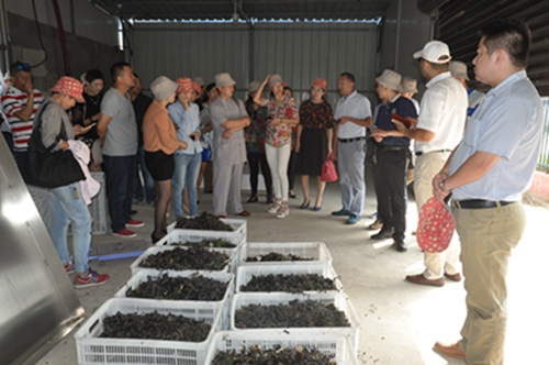 隨后,大家在河南省雙峰酒業(yè)有限公司董事長魯雙峰的熱情引導(dǎo)下,一起走進(jìn)了雙峰酒業(yè)的生產(chǎn)廠區(qū),大家首先看到的是一盆盆采摘的新鮮山野葡萄,這里的每一粒葡萄,都甘甜純凈,都是自然的饋贈。據(jù)魯總介紹,金頂山,一山跨“兩脈”(伏牛山與桐柏山),由于其特殊地理及氣候條件,蘊(yùn)含有豐富的優(yōu)質(zhì)野生山葡萄資源,當(dāng)?shù)厝撕茉缇烷_始利用野生山葡萄自釀山葡萄酒。雖然是出身當(dāng)?shù)剞r(nóng)家但他卻是一個(gè)野生山葡萄酒夢想家,他將當(dāng)?shù)刎S富的優(yōu)質(zhì)野生山葡萄資源和世界頂級生產(chǎn)設(shè)備及工藝緊緊地“握”在一起,致力打造“羋玥”野生山葡萄酒品牌。