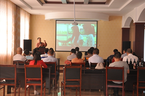 參觀完畢后,大家到達(dá)會議室,開始聆聽雙峰酒業(yè)創(chuàng)業(yè)歷程,了解羋月歷史文化及葡萄酒品鑒知識。河南省雙峰酒業(yè)有限公司董事長魯雙峰在致辭中說,2014年,公司開始生產(chǎn)“羋玥”野生山葡萄酒、窖藏橡木桶干紅、霞多麗干白葡萄酒,“羋玥”系列野生山葡萄酒“飛出深山”,相繼在駐馬店市區(qū)、中原市場走俏。剛剛結(jié)束的第十八屆中國農(nóng)加工洽談會評選中,“羋玥”系列野生山葡萄酒榮獲了農(nóng)產(chǎn)品優(yōu)質(zhì)獎的榮譽(yù)。雙峰酒業(yè)“羋玥·橡木桶窖藏干紅”也成為了第十八屆中國農(nóng)加工洽談會指定用酒。“互聯(lián)網(wǎng)+”時(shí)代,給創(chuàng)業(yè)者帶來了新啟發(fā),也提供了新機(jī)遇。他目前正著手與阿里巴巴·駐馬店電子產(chǎn)業(yè)帶合作,借助電商平臺,與漯河愷悅酒業(yè)合作,借助其攜手貴州金沙酒業(yè)集團(tuán)的“金沙醬酒·旗袍緣酒”銷售網(wǎng)絡(luò),并引進(jìn)外資腳踏實(shí)地把自有品牌“羋玥”系列野生山葡萄酒做大做強(qiáng)。