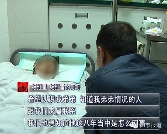 躺在病床上的這名小伙子就是楊紅雷,八年前,他從武漢一所職業(yè)學(xué)院畢業(yè),跟家人說出去找工作,沒想到從此失去了音訊。楊紅雷失聯(lián)八年,杳無音訊,家人四處尋找,卻沒有一點(diǎn)信息。