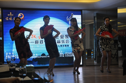 (記者 朱劍鋒) 談笑風(fēng)生的青年企業(yè)家、婀娜多姿的旗袍名媛、唯美典雅的舞蹈SHOW、優(yōu)美動(dòng)聽(tīng)的琵琶演奏、精彩高端的紅酒鑒賞、柔中帶剛的天極神韻表演……2015年9月25日晚,位于樂(lè)山路與置地大道交叉口西北角第五大道三樓優(yōu)伊?xí)永w體花園會(huì)議室上演了一場(chǎng)別開(kāi)生面的高端會(huì)員旗袍盛宴,主題為“青年企業(yè)家第十次商務(wù)聯(lián)誼會(huì)暨聯(lián)合旗袍會(huì)迎雙節(jié)冷餐音樂(lè)會(huì)” 璀璨亮相。駐馬店市青年企業(yè)家微信群內(nèi)30名知名企業(yè)家、商業(yè)領(lǐng)導(dǎo)者、時(shí)尚名媛、各界CEO與旗袍會(huì)駐馬店分會(huì)的旗袍名媛們或談笑風(fēng)生,或輕舞飛揚(yáng),仿佛穿越般地回到了過(guò)去。