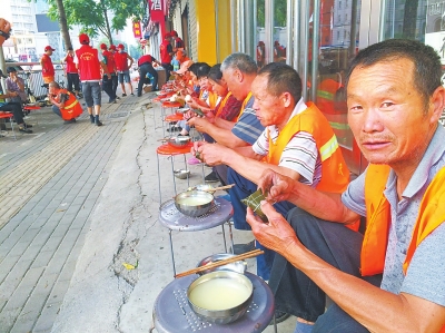 鄭州公益愛心粥屋給環(huán)衛(wèi)工提供的不只是粽子