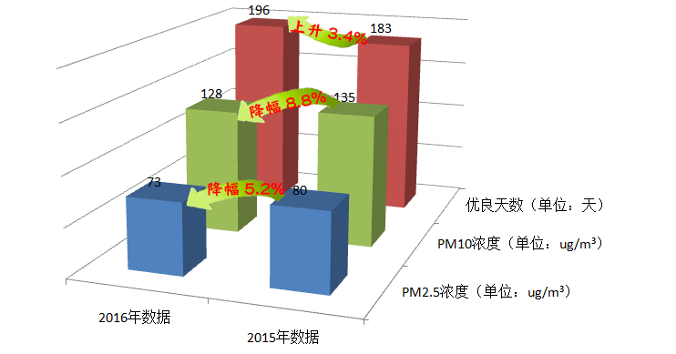 發(fā)布會(huì)現(xiàn)場(chǎng),省環(huán)保廳副廳長(zhǎng)王朝軍通報(bào)了2016年河南省環(huán)境質(zhì)量狀況。2016年,全省上下堅(jiān)持以改善環(huán)境質(zhì)量為核心,以堅(jiān)決打好大氣污染防治攻堅(jiān)戰(zhàn)為主線,實(shí)現(xiàn)了“兩降一升”,一舉扭轉(zhuǎn)大氣質(zhì)量持續(xù)惡化趨勢(shì)?!皟山怠保杭碢M10、PM2.5平均濃度雙下降,2016年全省PM10平均濃度128微克/立方米,同比下降7微克/立方米,降幅5.2%;PM2.5平均濃度73微克/立方米,同比下降7微克/立方米,降幅8.8%?!耙簧保杭慈陜?yōu)良天數(shù)為196天,同比增加13天,上升3.4%,超額完成國(guó)家下達(dá)我省指標(biāo)任務(wù)。雖然全省環(huán)境攻堅(jiān)工作取得了一些成績(jī),但是全省環(huán)境質(zhì)量狀況整體形勢(shì)依然嚴(yán)峻,當(dāng)前和今后一個(gè)時(shí)期,生態(tài)環(huán)境仍然是我省經(jīng)濟(jì)社會(huì)發(fā)展中的突出短板。