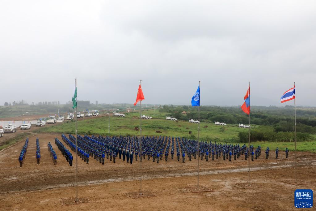 9月6日,在“共同命運-2021”國際維和實兵演習(xí)開始儀式上,中國參演官兵整齊列隊。新華社記者 劉芳 攝