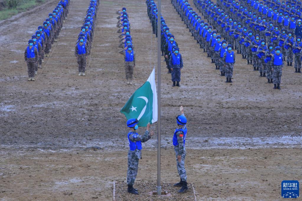 9月6日,在“共同命運-2021”國際維和實兵演習(xí)開始儀式上,升旗手升巴基斯坦國旗。新華社記者 劉芳 攝