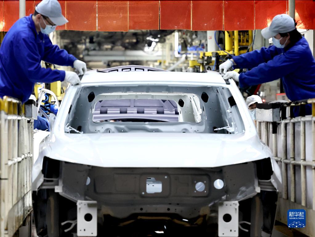 上汽臨港乘用車工廠工人在總裝車間工作(4月23日攝)。新華社記者 陳建力 攝
