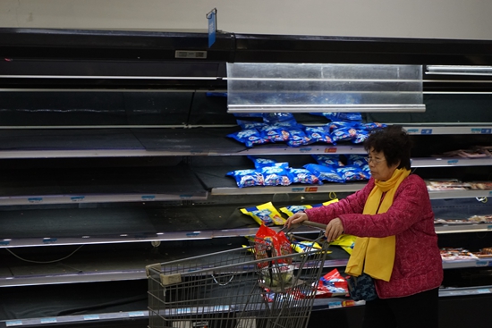北京望京某超市將撤店,部分貨架缺貨、賣光。視覺中國供圖
