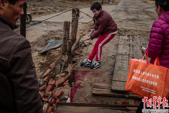 河北省香河縣王店子村,第四代擺渡人李國(guó)新的女兒幫渡船靠岸。
