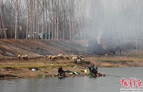 3月25日,周六,天剛蒙蒙亮,河北省廊坊市香河縣王店子村,開(kāi)三輪車(chē)的老人、騎電動(dòng)車(chē)的小伙子、抱著孩子的婦女……三三兩兩地來(lái)到村口的潮白河邊等待擺渡過(guò)河。