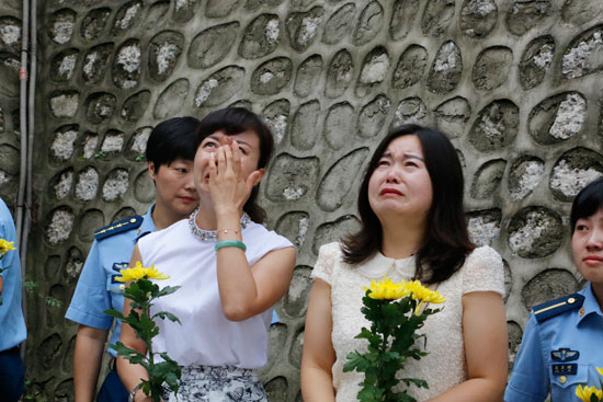 烈士親屬在英烈墻前悲傷不已。資料圖片