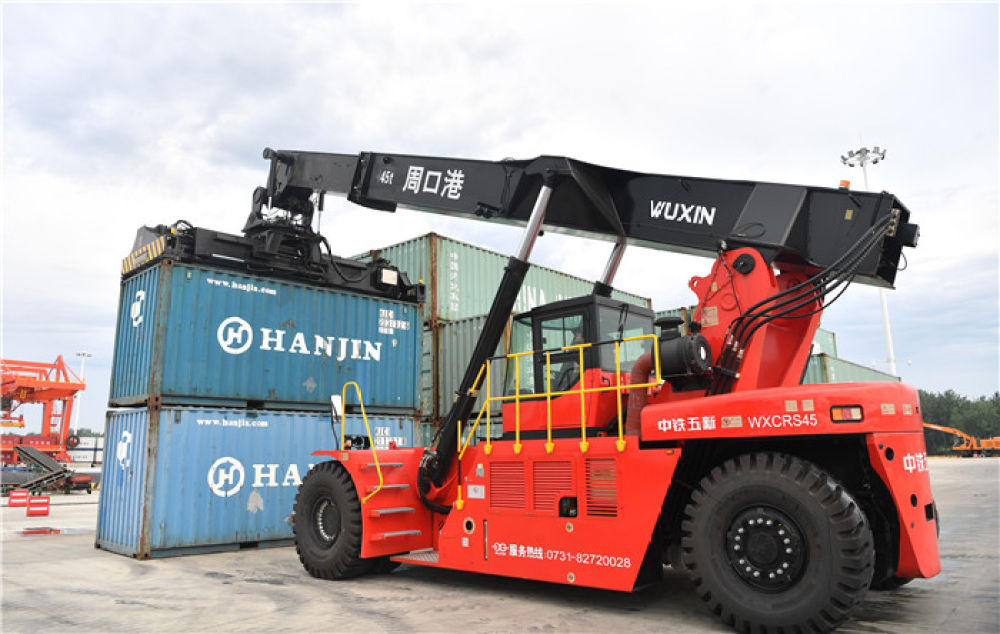工人在周口中心港碼頭搬運(yùn)集裝箱(7月31日攝)。新華社記者 李嘉南 攝