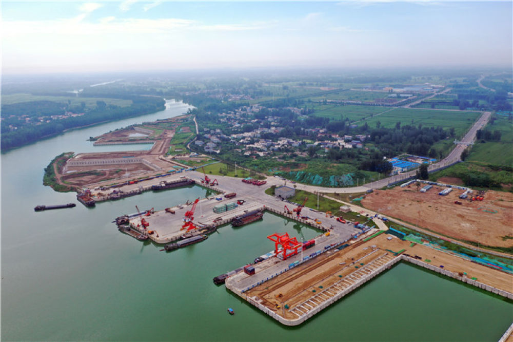 7月31日拍攝的周口中心港碼頭(無人機(jī)照片)。新華社記者 李嘉南 攝