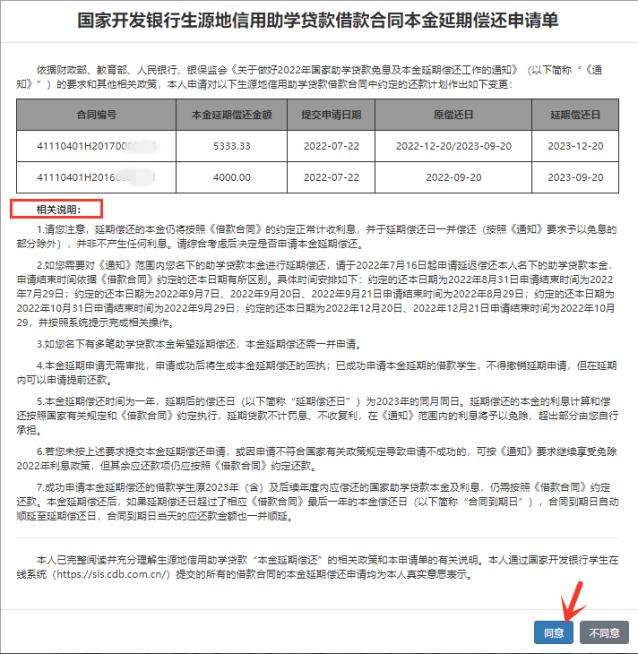 6.如果因成功申請了本金延期償還,導(dǎo)致延期償還日晚于相應(yīng)《借款合同》約定的貸款期限內(nèi)最后一年的本金償還日(即“合同到期日”),則合同到期日自動順延至延期償還日,原合同到期日應(yīng)償還的本息需于延期償還日償還,相應(yīng)新增利息也需由借款學(xué)生承擔(dān),于延期償還日一并償還。即:最后一年合同到期日為2023年9月20日的合同如果申請成功,延期還款日為2023年12月20日,晚于合同到期日2023年9月20日,相應(yīng)利息需要借款學(xué)生承擔(dān)。