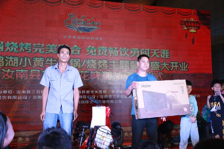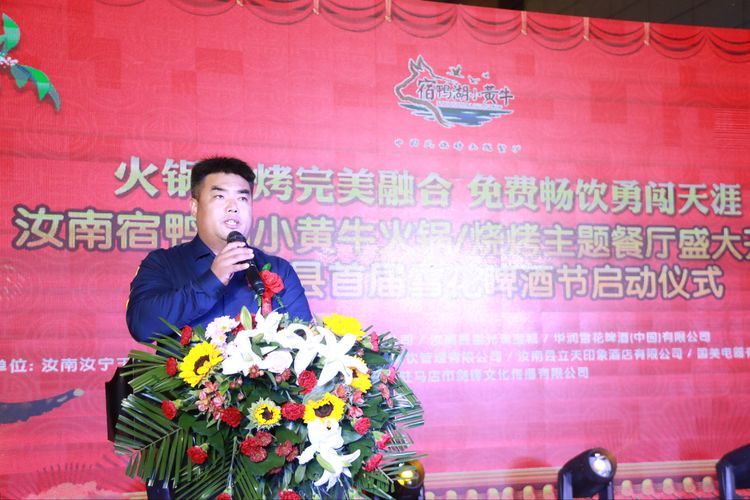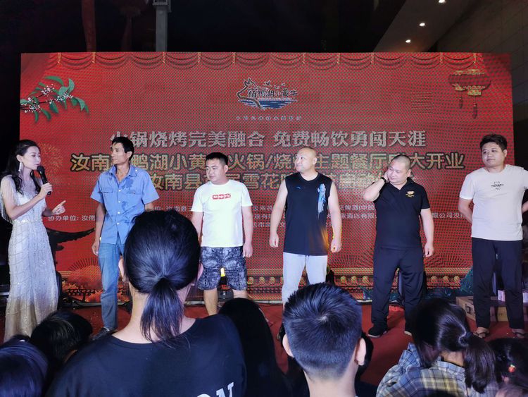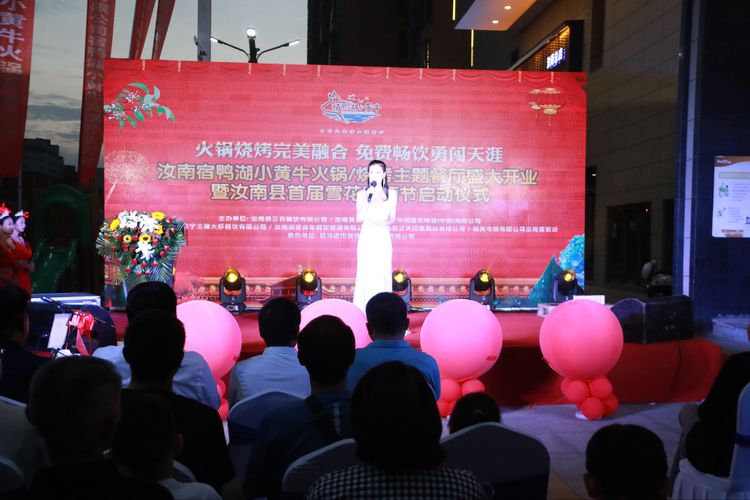火鍋燒烤配美酒,激情狂歡不夜天。2020年9月19日,由汝南縣三石餐飲有限公司、華潤(rùn)雪花啤酒(中國(guó))有限公司主辦,汝南汝寧王婆大蝦餐飲有限公司、汝南燜菜青年餐飲管理有限公司、汝南縣立天印象酒店有限公司、國(guó)美電器有限公司汝南愛(ài)家店協(xié)辦,駐馬店市劍鋒文化傳播有限公司承辦的汝南宿鴨湖小黃?;疱?燒烤主題餐廳盛大開(kāi)業(yè)暨汝南縣首屆雪花啤酒節(jié)啟動(dòng)儀式在汝南縣星光珠寶城一樓南側(cè)隆重舉行。