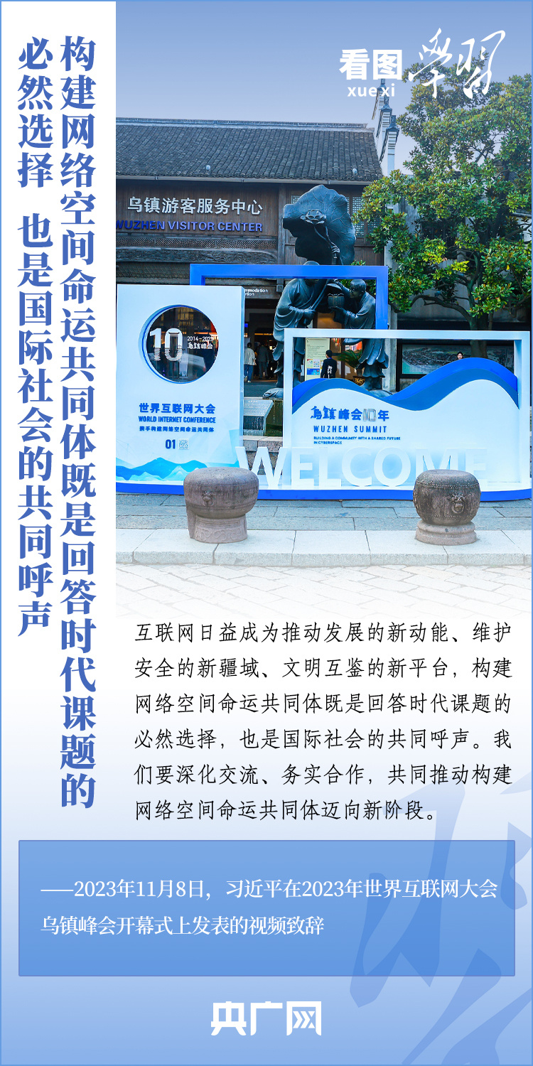 11月8日上午,國家主席習(xí)近平向2023年世界互聯(lián)網(wǎng)大會烏鎮(zhèn)峰會開幕式發(fā)表視頻致辭指出,“構(gòu)建網(wǎng)絡(luò)空間命運(yùn)共同體既是回答時代課題的必然選擇,也是國際社會的共同呼聲。我們要深化交流、務(wù)實(shí)合作,共同推動構(gòu)建網(wǎng)絡(luò)空間命運(yùn)共同體邁向新階段。”