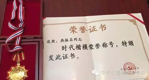 中共中央宣傳部發(fā)布河南省長葛市水磨河村黨委書記燕振昌的先進(jìn)事跡,并授予他“時(shí)代楷模”榮譽(yù)稱號。在授予決定中這樣寫道,“燕振昌帶領(lǐng)全村干部群眾苦干實(shí)干,把昔日的貧困村建成遠(yuǎn)近聞名的富裕村、文明村”。