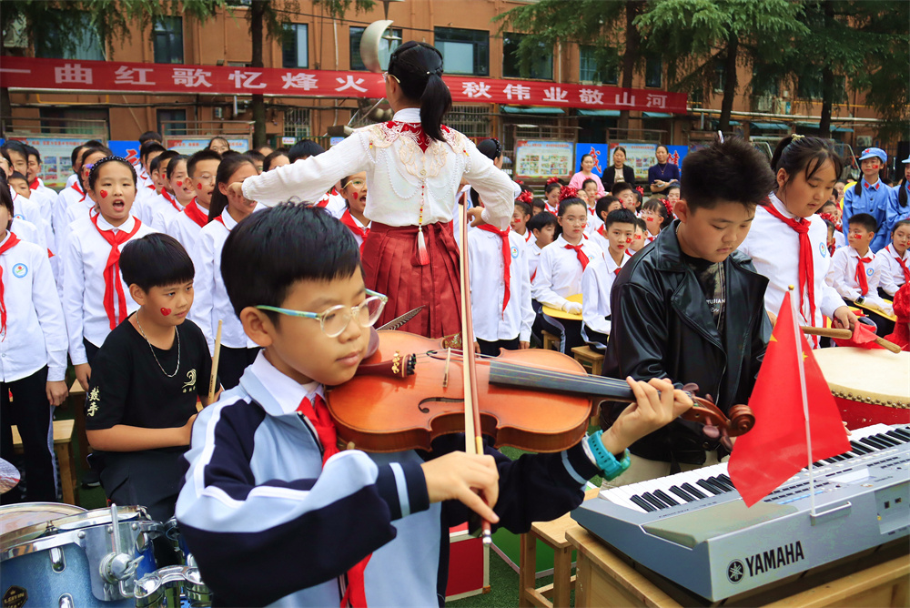 “一曲紅歌憶烽火,千秋偉業(yè)敬山河。”一首首紅歌,既是波瀾壯闊歷史的生動(dòng)見(jiàn)證,更是紅色精神的代代傳承。此次賽歌會(huì)中,《歌唱祖國(guó)》《中國(guó)中國(guó),鮮紅的太陽(yáng)永不落》《游擊隊(duì)之歌》《志愿軍戰(zhàn)歌》《走向復(fù)興》《紅領(lǐng)巾心向黨》《我們走在大路上》《團(tuán)結(jié)就是力量》《少年中國(guó)夢(mèng)》《沒(méi)有共產(chǎn)黨就沒(méi)有新中國(guó)》等經(jīng)典曲目相繼登臺(tái)。同學(xué)們用稚嫩卻堅(jiān)定的嗓音,唱出對(duì)祖國(guó)的贊美,也讓紅色記憶在歌聲中深深扎根。