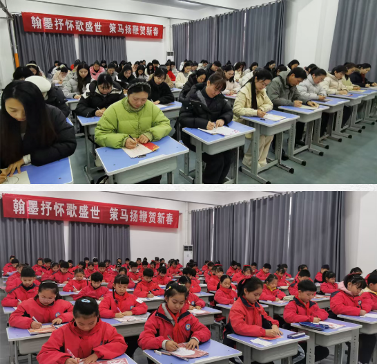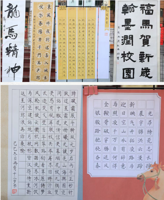 比賽現(xiàn)場(chǎng)氛圍莊重而熱烈。教師組選手或凝神靜氣,以蒼勁楷書(shū)寫(xiě)下對(duì)教育事業(yè)的執(zhí)著;或運(yùn)筆從容,以流暢行書(shū)表達(dá)對(duì)新年的祝愿。學(xué)生組選手坐姿端正、握筆規(guī)范,一筆一劃間盡顯專注,稚嫩的筆觸中流露出對(duì)傳統(tǒng)文化的興趣與向往??瑫?shū)的端莊、隸書(shū)的古樸、行書(shū)的灑脫在作品中一一呈現(xiàn):有的書(shū)寫(xiě)經(jīng)典詩(shī)詞,傳遞文韻雅意;有的創(chuàng)作新春短句,寄托美好祝福;還有的圍繞“馬年”題寫(xiě)吉祥話語(yǔ),將生肖文化與節(jié)日氛圍自然融合。