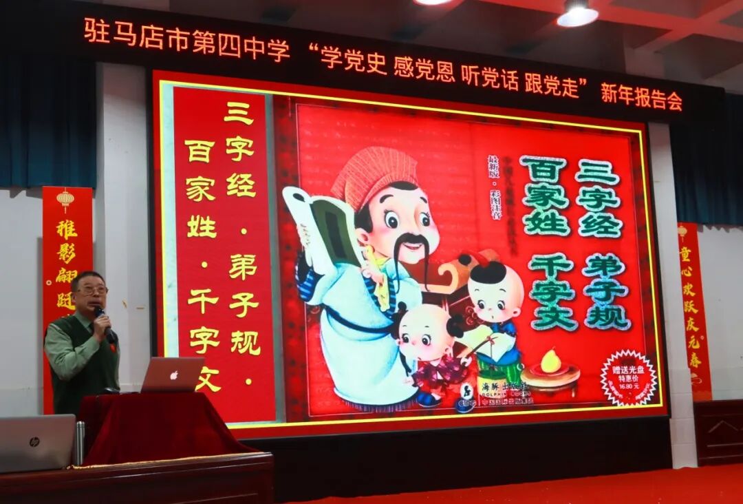 2025年12月31日,在這辭舊迎新的特殊時(shí)刻,駐馬店市第四中學(xué)報(bào)告廳內(nèi)氣氛莊嚴(yán)而熱烈。一場面向八年級學(xué)生的“學(xué)黨史、感黨恩、聽黨話、跟黨走”新年主題報(bào)告會,在雄壯的國歌聲中拉開帷幕。