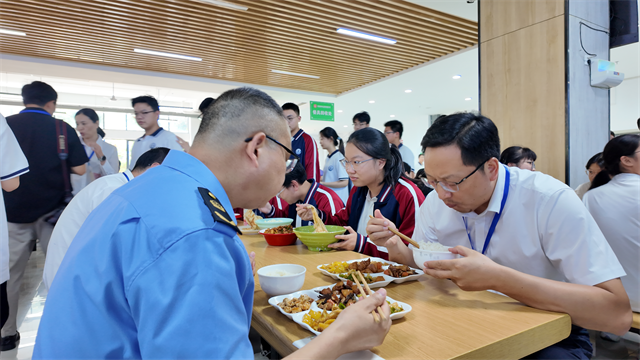 此外,執(zhí)法人員對食堂食品加工制作、餐具清洗消毒、食品留樣等重點環(huán)節(jié)和高風(fēng)險隱患點進行全面檢查,并現(xiàn)場指導(dǎo)從業(yè)人員規(guī)范操作。當天,執(zhí)法人員還與學(xué)校負責(zé)人一同參與“開學(xué)第一餐”陪餐活動,面對面傾聽學(xué)生對飯菜口味、份量、衛(wèi)生狀況的意見和建議,及時掌握食堂管理需求。