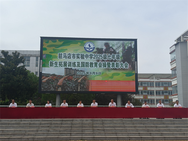 9月9日下午,駐馬店市實驗中學2025級七年級新生拓展訓練及國防教育匯報表演暨表彰大會在該校操場隆重舉行,為為期十天的新生軍訓畫上圓滿句號。