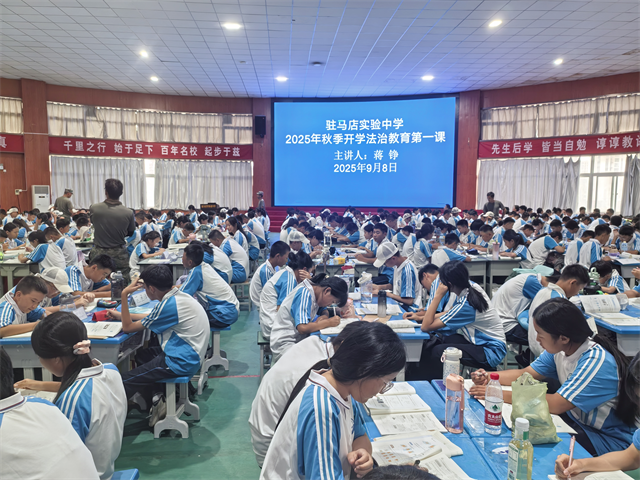 為增強(qiáng)學(xué)生法治意識(shí),筑牢校園安全防線,2025年9月8日下午,駐馬店實(shí)驗(yàn)中學(xué)在綜合樓五樓舉行了以“法治護(hù)航,健康成長(zhǎng)”為主題的秋季開學(xué)法治教育第一課專題講座。駐馬店市司法局副局長(zhǎng)、學(xué)校法治副校長(zhǎng)蔣錚同志擔(dān)任主講,駐馬店市實(shí)驗(yàn)中學(xué)金山校區(qū)副校長(zhǎng)趙青松主持,七年級(jí)師生齊聚一堂,共同接受了這場(chǎng)深刻的法治洗禮。