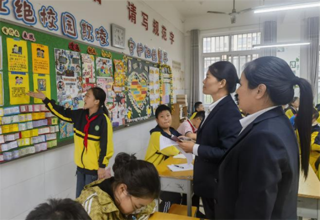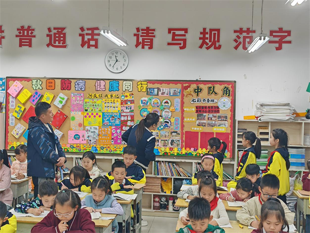 評比期間,學校領導深入各年級教室逐班查看,結合主題契合度、內容實用性與設計創(chuàng)意,與師生交流創(chuàng)作思路并給出優(yōu)化建議,確保評比專業(yè)且具指導性。