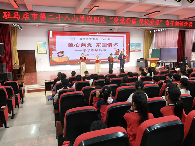 9月26日,駐馬店市第二十八小學(xué)沉浸在溫馨熱烈的氛圍中,一場(chǎng)別開(kāi)生面的“愛(ài)黨愛(ài)國(guó) 愛(ài)校愛(ài)家”親子朗誦活動(dòng)在此啟幕。48組親子家庭攜手登臺(tái),以聲傳情、以誦達(dá)意,為全校師生獻(xiàn)上一場(chǎng)充滿家國(guó)情懷的視聽(tīng)盛宴。