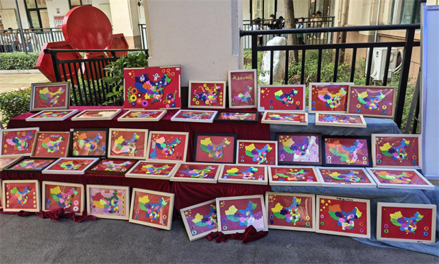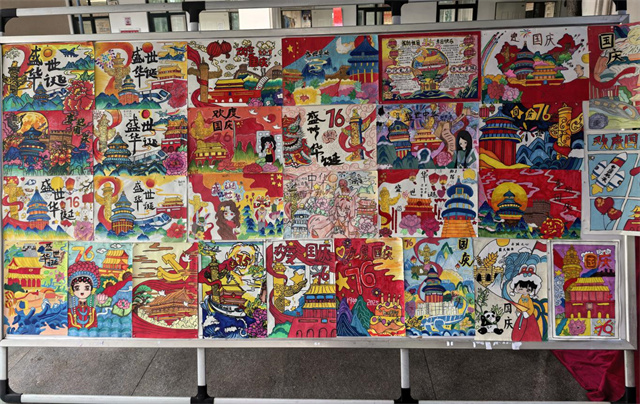 在美術(shù)展現(xiàn)場(chǎng),一幅幅色彩斑斕、創(chuàng)意十足的作品,不僅展示了孩子們的藝術(shù)才華,更表達(dá)了他們對(duì)祖國(guó)的無(wú)限熱愛(ài)和美好祝愿。美術(shù)展以“喜迎國(guó)慶 禮贊中國(guó)”為核心,一年級(jí)制作中國(guó)地圖拼貼畫、二年級(jí)手工黏土、三年級(jí)手工折扇、五年級(jí)主題繪畫、六年級(jí)紅色風(fēng)車,以多種形式生動(dòng)展現(xiàn)了學(xué)生對(duì)祖國(guó)的祝福以及對(duì)美好生活的向往。