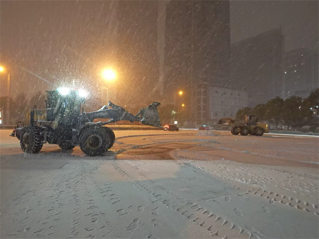 1月18日晚,中央及河南氣象臺接連發(fā)布冰凍、暴雪預警,駐馬店市同步下發(fā)停課緊急通知,極端天氣來襲牽動人心。1月19日,雨雪強度達到峰值,路面積雪結(jié)冰迅速蔓延,給城市交通和市民出行帶來嚴重安全隱患。面對嚴峻形勢,示范區(qū)快速響應、統(tǒng)籌調(diào)度,中建五局智運公司聞令而動、火速集結(jié),一場與風雪賽跑的應急除雪攻堅戰(zhàn)全面打響。