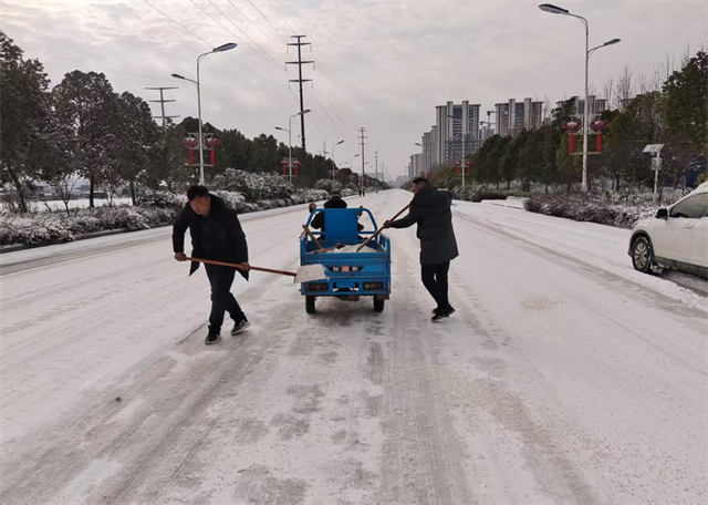 當(dāng)天,居委會(huì)工作人員和志愿者早早來到集合點(diǎn),大家手持鐵鍬、雪鏟等工具,以雪為令、聞雪而動(dòng)。在轄區(qū)的主干道、沿街路段,及老年人常活動(dòng)的重點(diǎn)區(qū)域,大家分工協(xié)作、干勁十足。有人負(fù)責(zé)鏟除路面的厚冰硬雪,有人負(fù)責(zé)將積雪清運(yùn)至路邊,還有人負(fù)責(zé)撒鹽融冰,全力消除結(jié)冰隱患。原本濕滑難行的路面,在大家的共同努力下逐漸變得干凈通暢。經(jīng)過數(shù)小時(shí)的奮戰(zhàn),轄區(qū)內(nèi)主要道路和重點(diǎn)區(qū)域及老年人高頻出行路段的積雪基本清理完畢,為居民們尤其是老年群體鋪就了一條安全的出行之路。