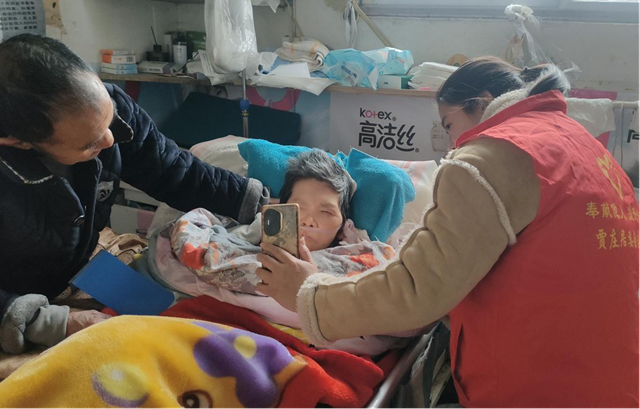 在行動(dòng)不便的老人家中,志愿者們耐心地協(xié)助完成身份核驗(yàn),仔細(xì)為老人進(jìn)行人臉識(shí)別。對(duì)于臥床不起的殘疾老人,志愿者們更是全程細(xì)致周到,確保認(rèn)證流程順利完成。同時(shí),志愿者們還與老人親切交談,關(guān)心他們的日常生活和身體狀況,認(rèn)真傾聽訴求,并為老人講解養(yǎng)老政策,叮囑他們注意冬季保暖和用火用電安全。