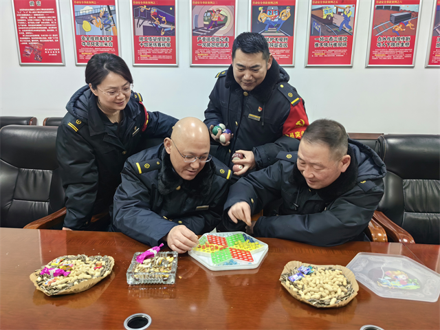 棋牌對弈,智趣交融:在跳棋與軍棋桌前,職工們圍坐對弈、切磋棋藝。大家凝神靜氣、巧思布局,在方寸棋盤間運籌帷幄,在你來我往中交流心得。有的職工在軍棋“楚河漢界”間排兵布陣,攻防有度;有的在跳棋棋盤上巧妙搭橋,步步為營。大家一邊品嘗著花生瓜子、糖果等傳統(tǒng)年食,一邊交流互動,既鍛煉了思維,又拉近了彼此距離,在輕松的氛圍中增進了同事間的默契與情誼。